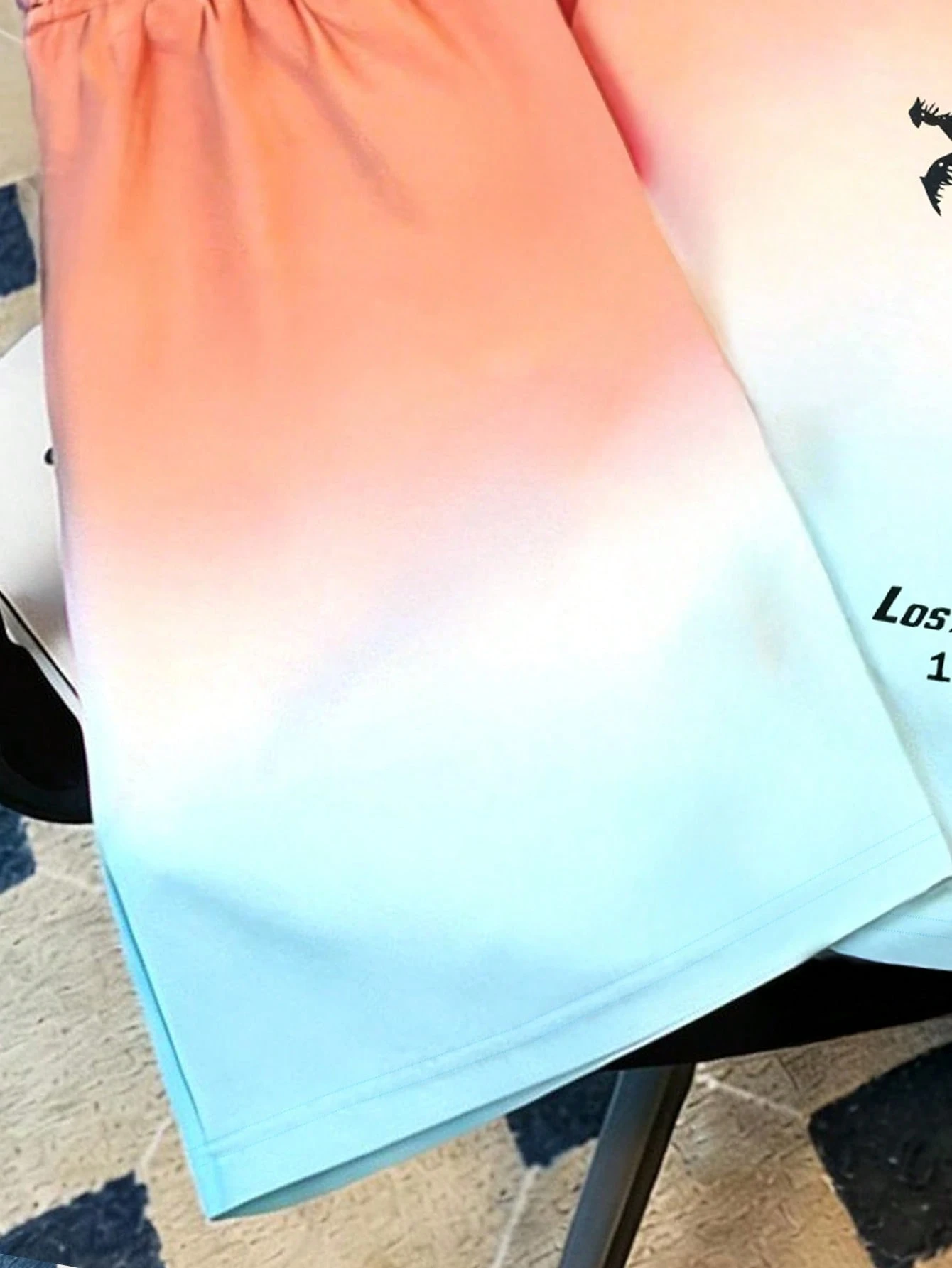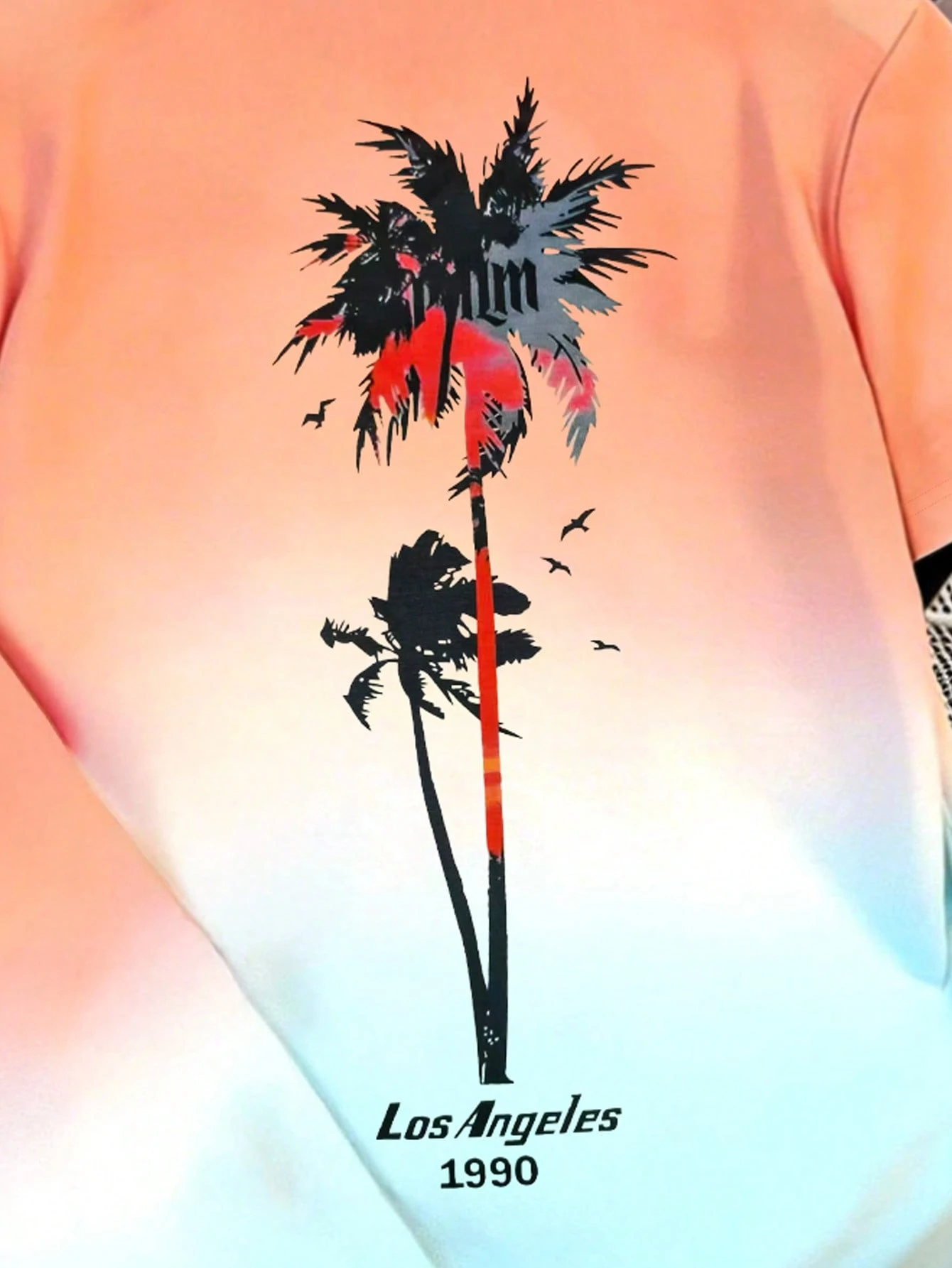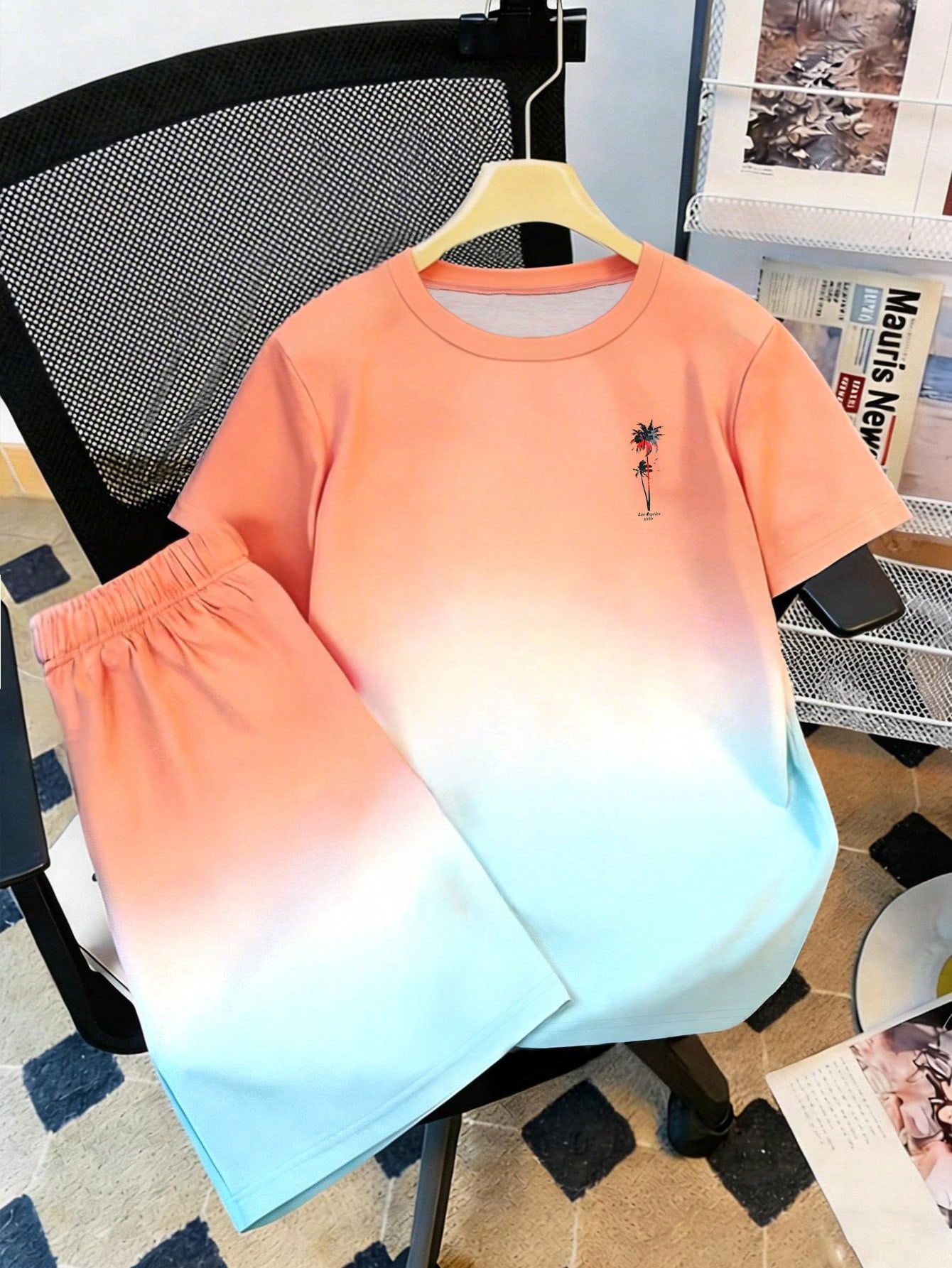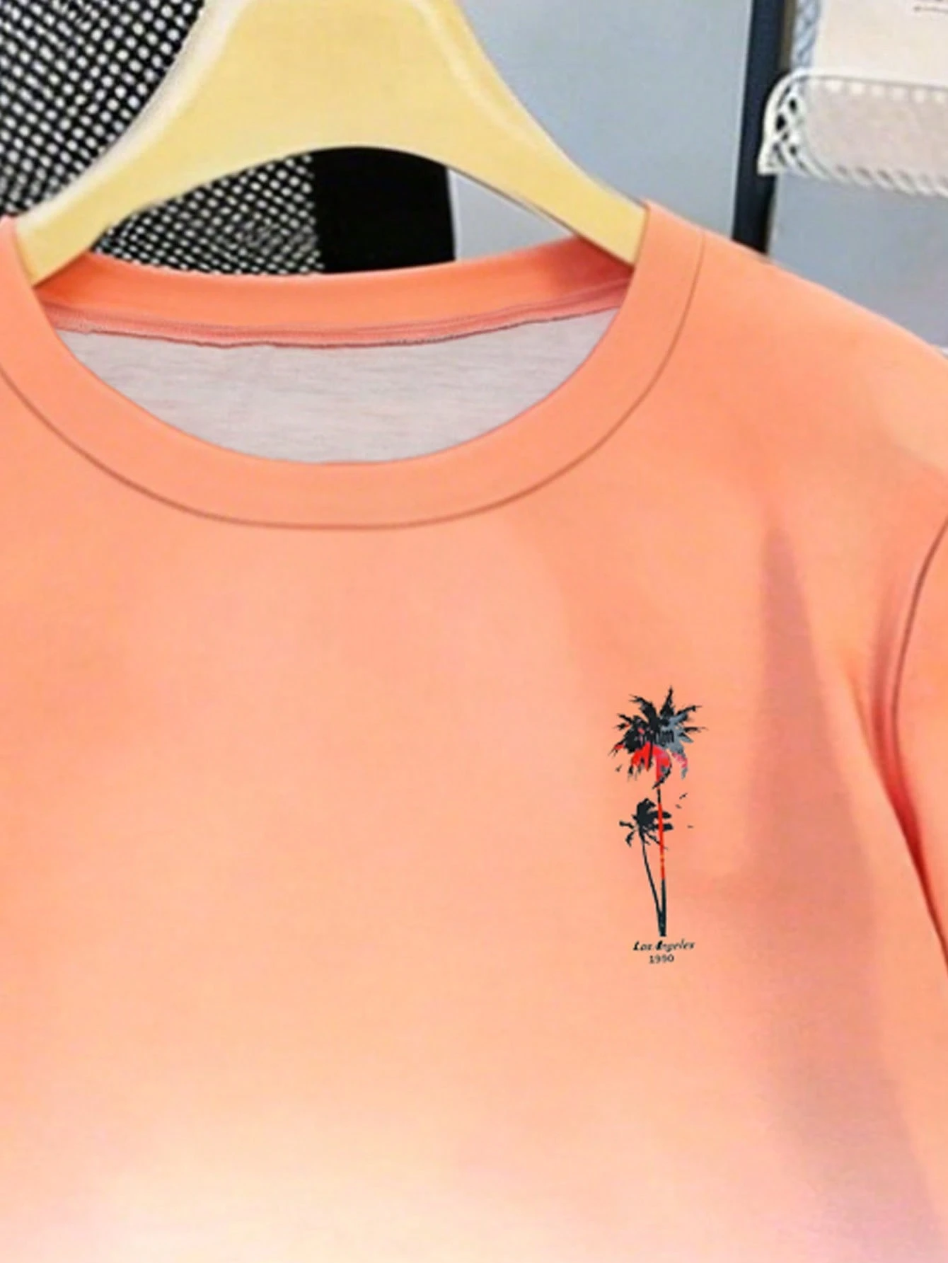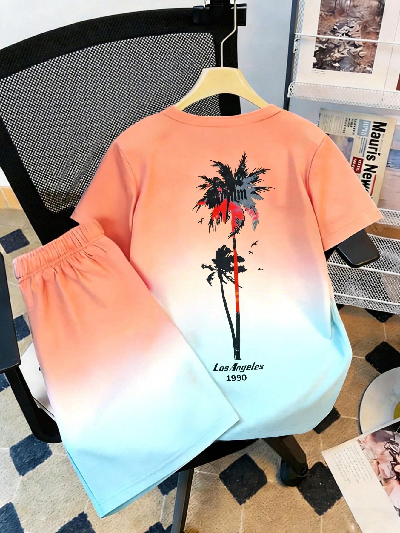 جديدطقم تي شيرت وشورت مطبوع بأشجار النخيل للمراهقين، إطلالة كاجوال ذات طابع استوائي مناسبة للربيع والصيف، متعددة الاستخدامات للارتداء اليومي والرياضة الخارجية